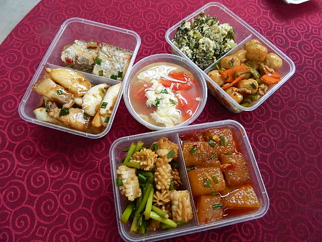 红烧海鲜、红烧冬瓜、茭白烧肉、咸菜鱼子、