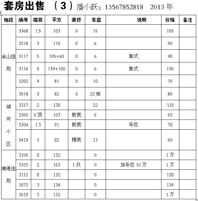 石浦套房出售100套 2013年